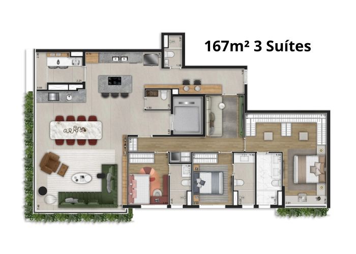 Seus apartamentos são modernos e confortáveis, com opções de plantas que variam de 123 a 167m², 3 e 2 suítes + Duplex e 2 a 3 vagas de garagem.
