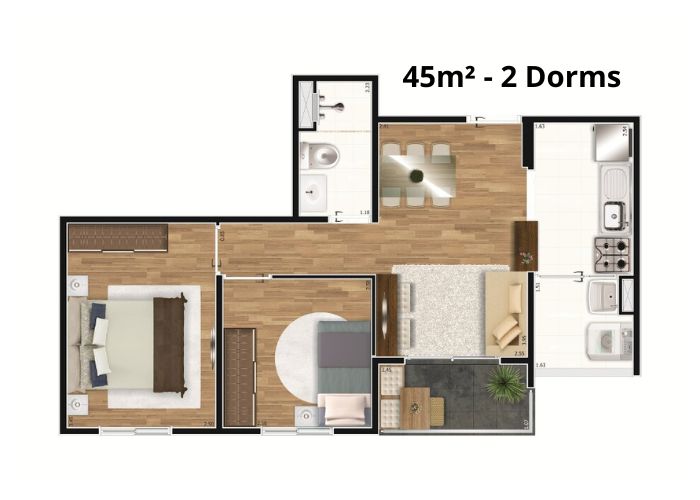 1 a 2 Dormitórios