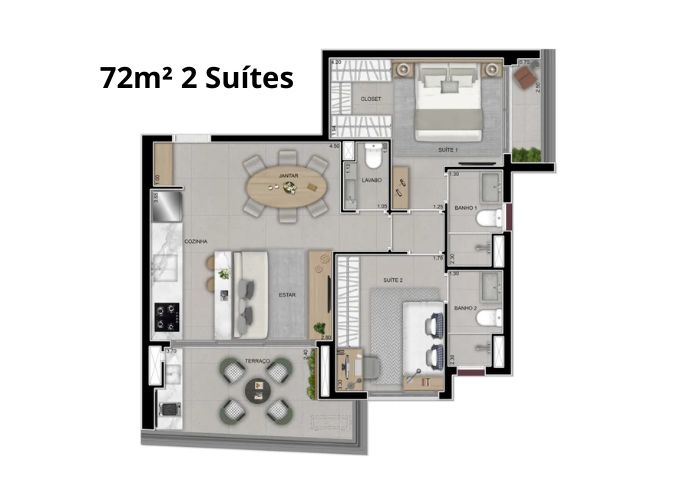 Sua área de lazer é completa e possui academia, salão de festas, espaço gourmet, pet place, churrasqueira, piscina, playground, coworking e mais.
