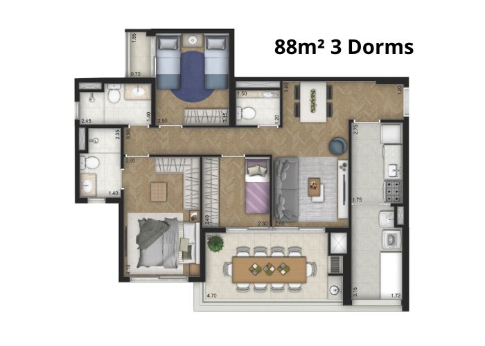 1 a 3 Dormitórios