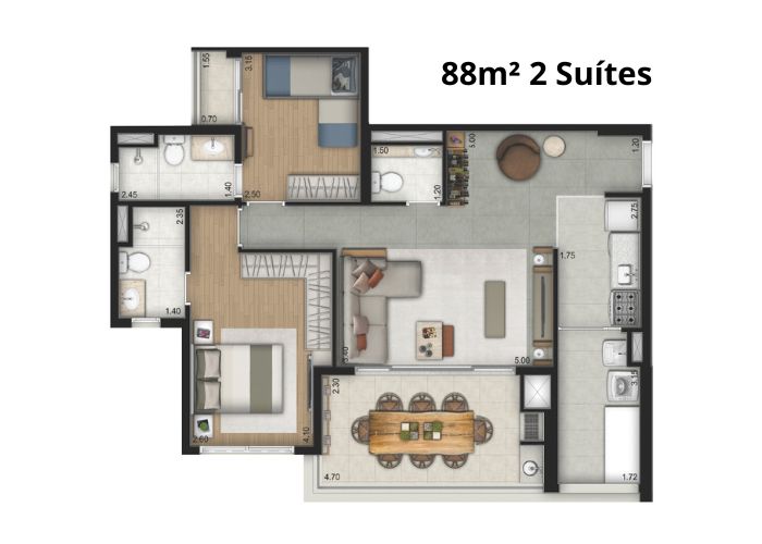 2 a 3 Suítes