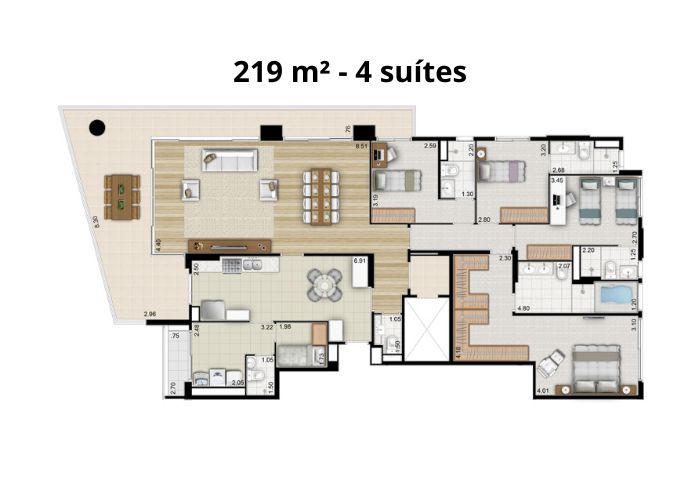 Apartamentos com 4 suítes em torre única no Campo Belo. Janelas grandes, que valorizam a iluminação e ventilação, salas amplas e ótimo aproveitamento de espaço.