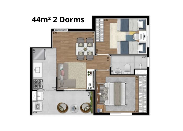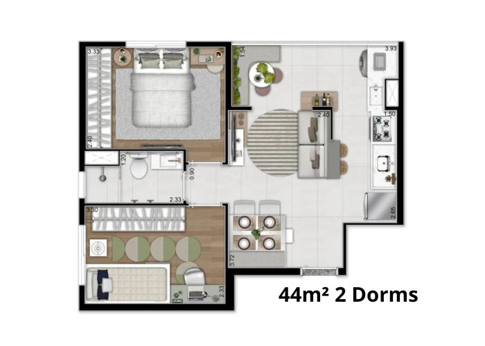 As unidades do Elev Vila Prudente possuem 2 quartos, 45m² e varanda gourmet. Sua área de lazer inclui churrasqueira, salão de festas, playground e brinquedoteca.
