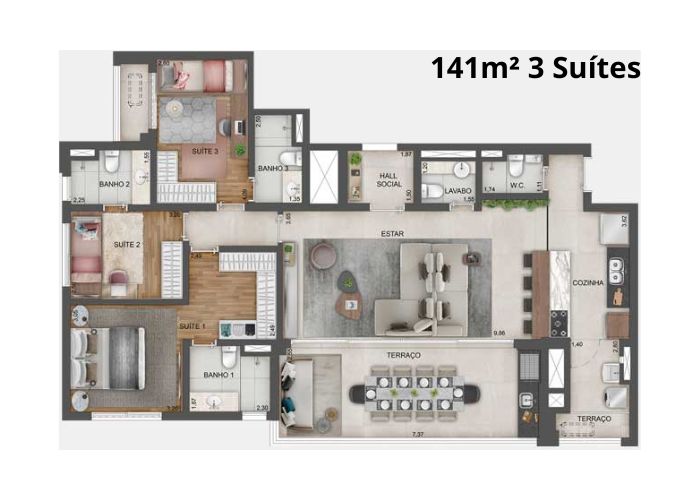 2 a 3 Suítes
