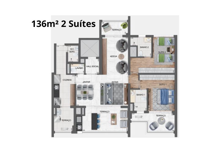 2 a 3 Suítes
