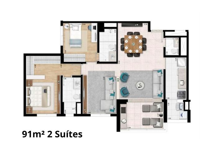2 a 3 Suítes
