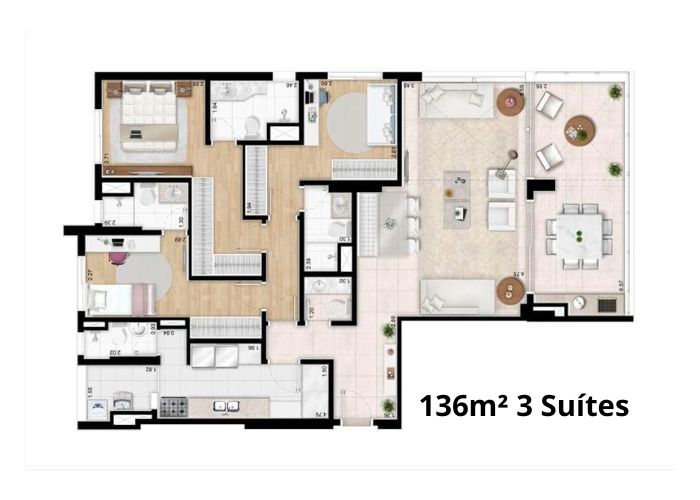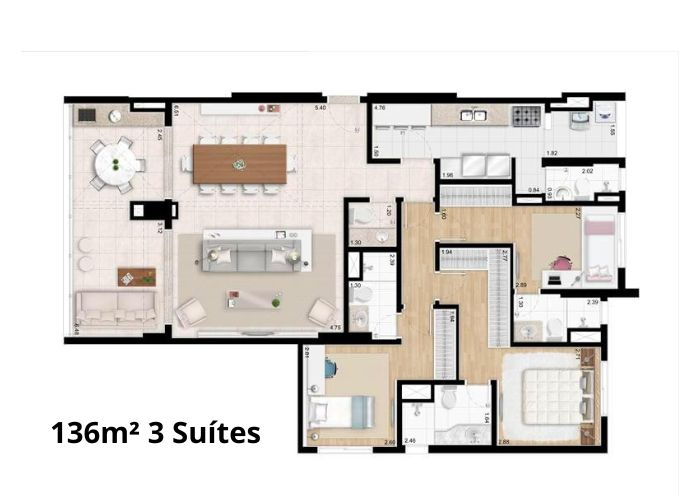 1 a 3 Suítes
