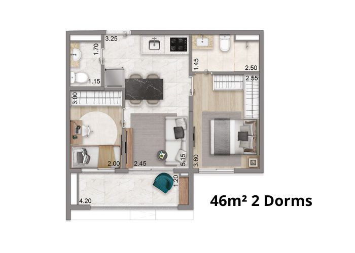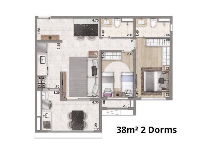 1 a 2 Dormitórios