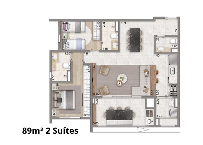 2 a 3 Suítes