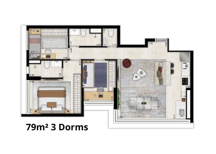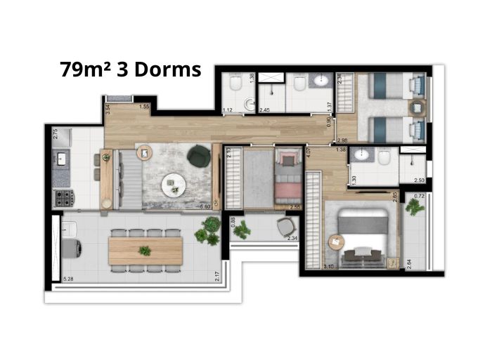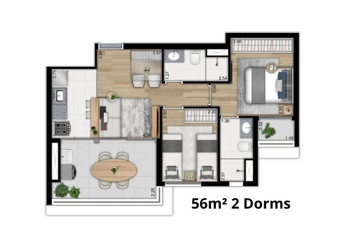 O Nattur Nova Klabin é um condomínio que possui conceito de resort residencial, contando com uma ampla infraestrutura para os seus momentos de lazer. Você pode escolher entre usufruir das piscinas nos dias ensolarados, aproveitar a churrasqueira ou salão de festas para reunir os amigos em ocasiões especiais, passar uma tarde com os pequenos nos espaços infantis ou apenas descansar em meio a natureza, no redário. São inúmeras opções para você aproveitar o seu tempo com quem você ama! Com terreno de 3.535 m², o condomínio reúne diferenciais que levam muita comodidade para a sua rotina, desde central delivery para as suas encomendas, coworking preparado para o trabalho remoto, até fitness, bicicletário e projeto de segurança equipado com clausura e monitoramento em todos os acessos de pedestres e veículos. São duas torres com apartamentos de 56 m² e 79 m², ambos com vaga de garagem. A primeira metragem possui 2 dormitórios, um deles suíte, e a metragem maior conta com 3 dormitórios, incluindo também uma suíte. As unidades possuem plantas confortáveis para o dia a dia da família e contam com diferenciais como: infraestrutura para instalação de ar-condicionado nos dormitórios e na sala, piso da área social nivelado com o terraço, água quente na cozinha e banheiros, ponto elétrico para grill e mais.