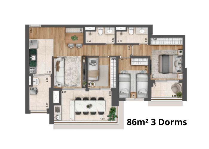 2 a 3 Dormitórios