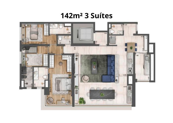 2 a 3 Suítes
