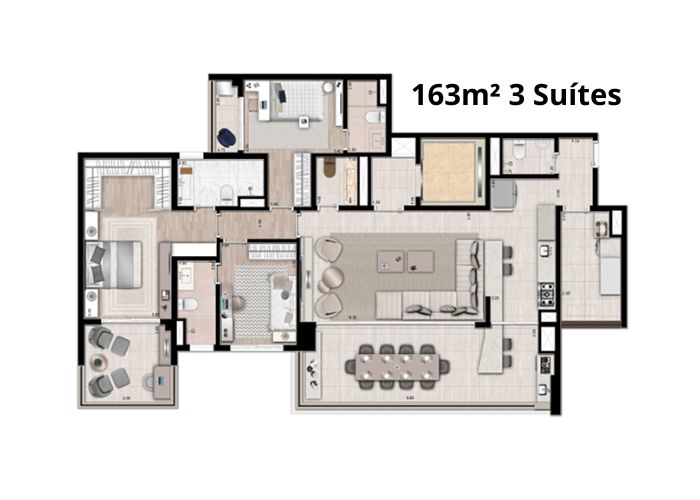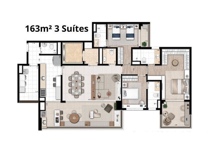 Viva o máximo de conforto no apartamento dos sonhos da sua família. Apartamento com 163m² com 3 suítes e 2 vagas.