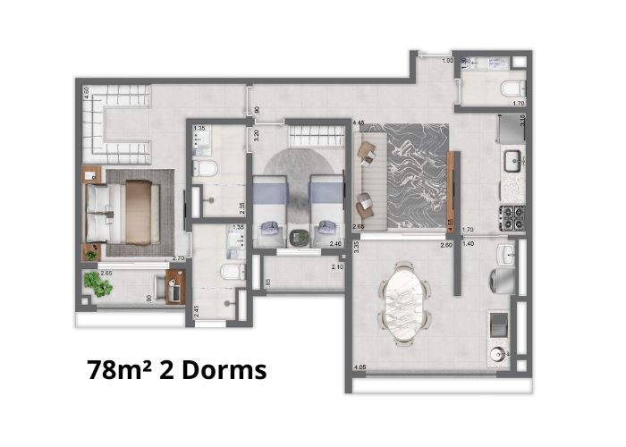 2 a 3 dormitórios