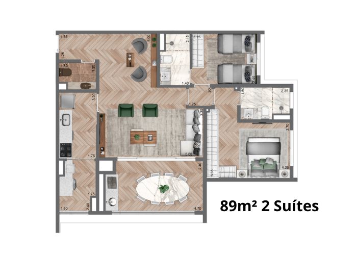 2 a 3 Suítes