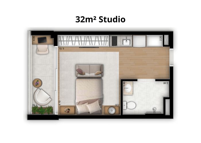 Viva com um novo estilo de vida. Studios de 24 a 39m² com lazer completo e serviços exclusivos.