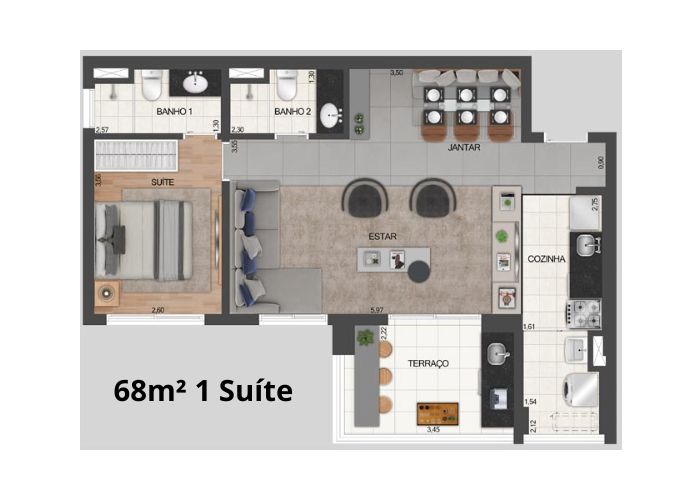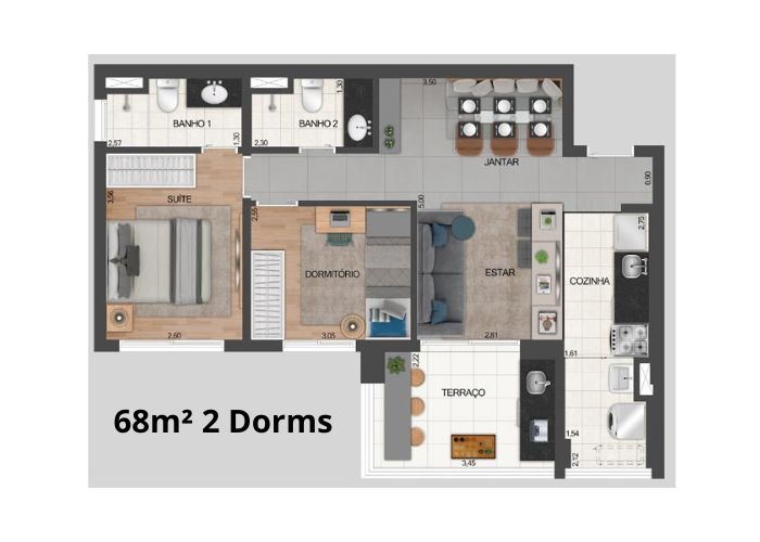 Studios a 2 Dormitórios
